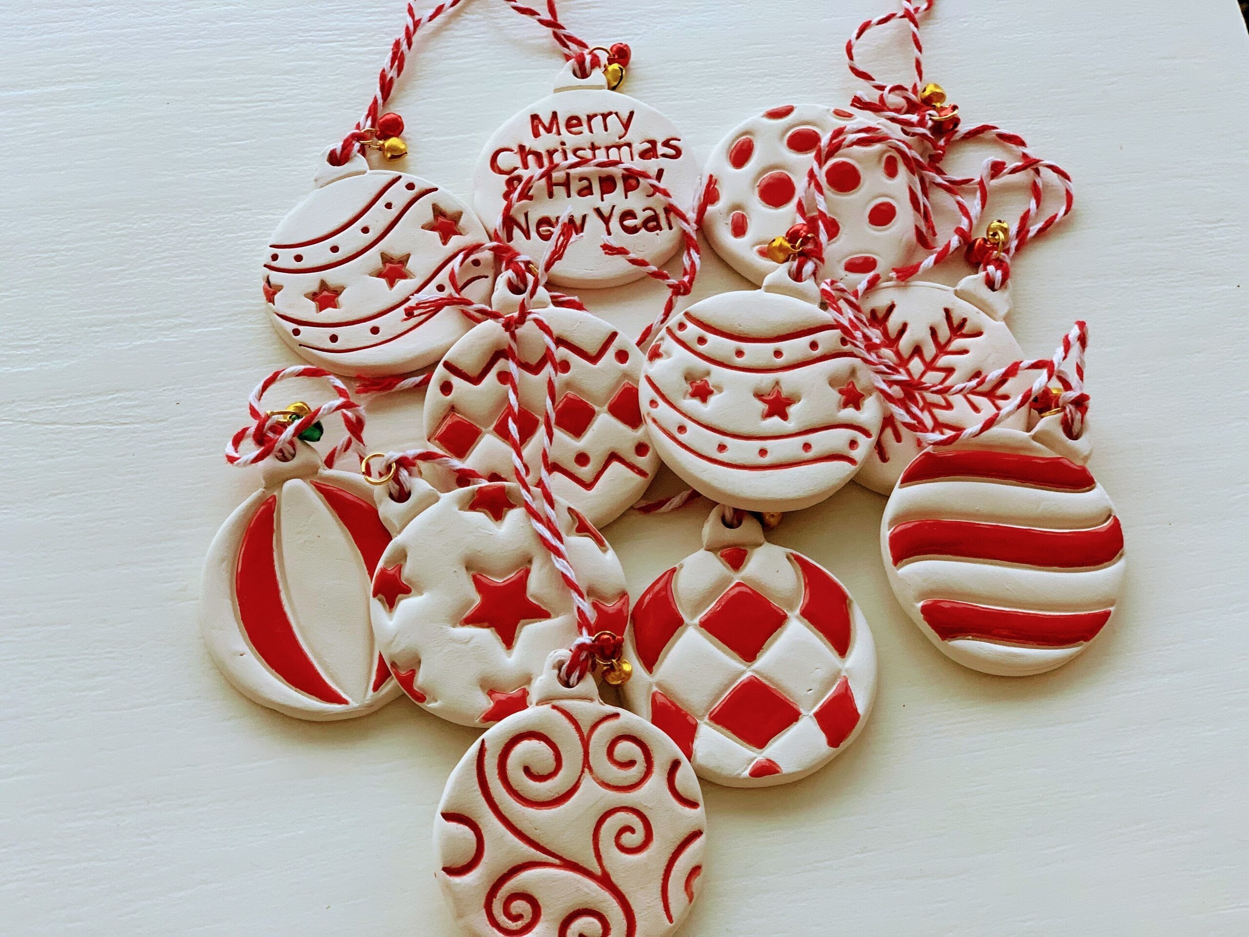 Bolas planas de cerámica para árbol de Navidad.